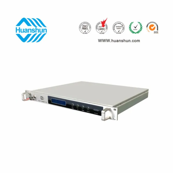 RF80 ± 5 dBuv 輸入,ITU 1550nm,  10 dBm - 插播和光可調損耗(約1.5dB) 輸出;1U標準機箱,雙模塊熱插撥電源,AC90  255V或DC-48V供電,RJ45標準網管(支持SNMP、WEB)